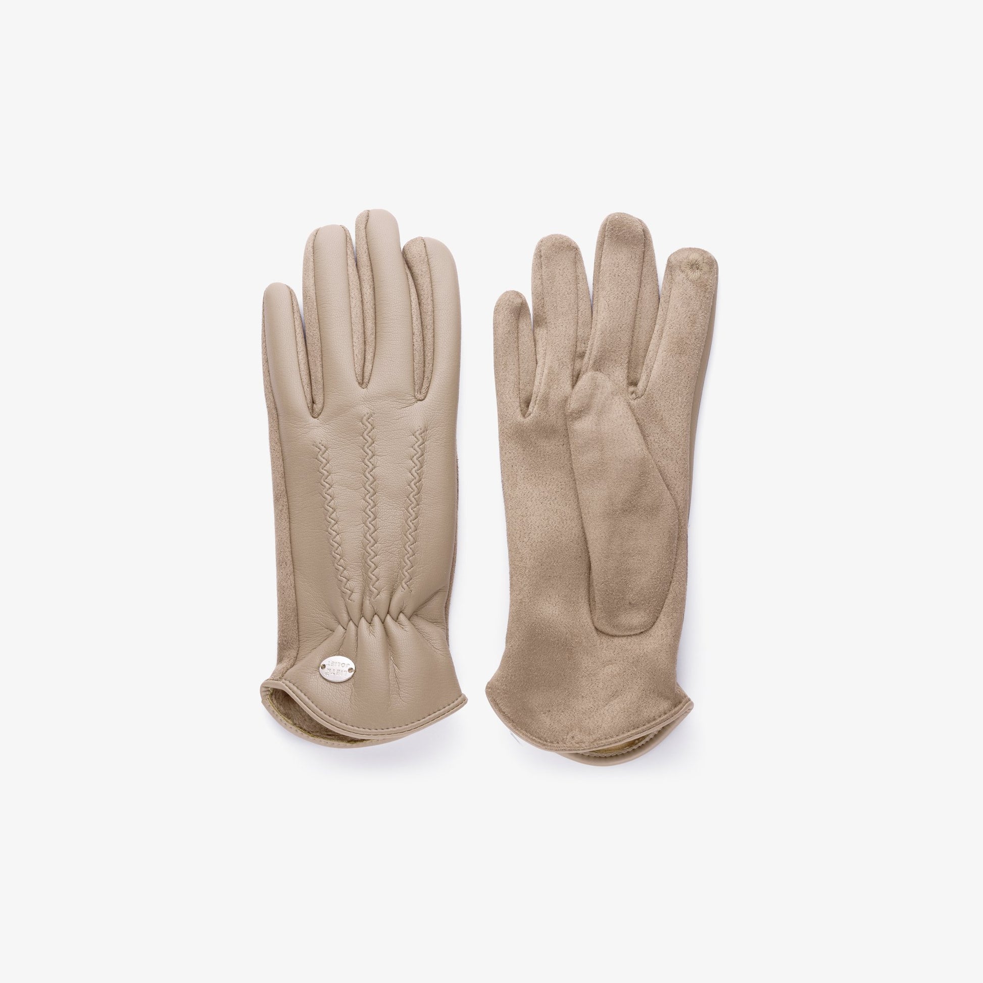 Diese Damenhandschuhe in Beige vereinen zeitlose Eleganz mit hohem Tragekomfort. Die Vorderseite ist in edler Lederoptik mit dekorativen Ziernähten gestaltet, während die Rückseite aus weichem Stoff gefertigt ist und für ein angenehmes Tragegefühl sorgt.