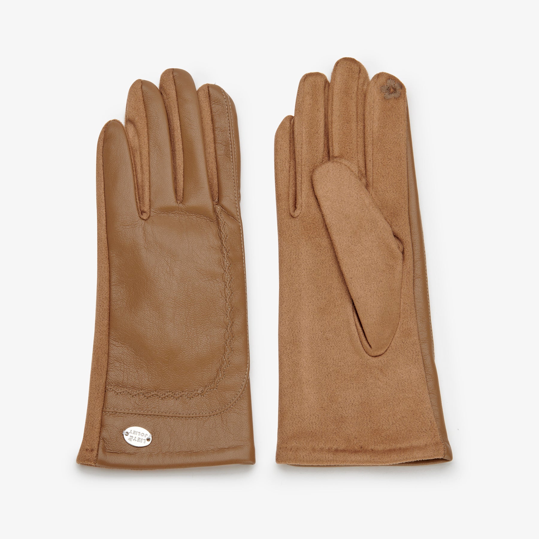 Damenhandschuhe Hellbraun – Lederoptik & Stoff, Einheitsgröße