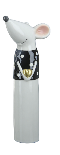 Die Dekofigur Maus mit goldenem Herz und Pünktchen-Outfit aus Porzellan ist ein liebevoller Hingucker für jedes Zuhause. Mit ihrem fröhlichen Design – schwarzes Oberteil mit weißen Punkten und einem goldfarbenen Herz – zaubert sie sofort ein Lächeln und bringt charmante Leichtigkeit in deine Einrichtung.