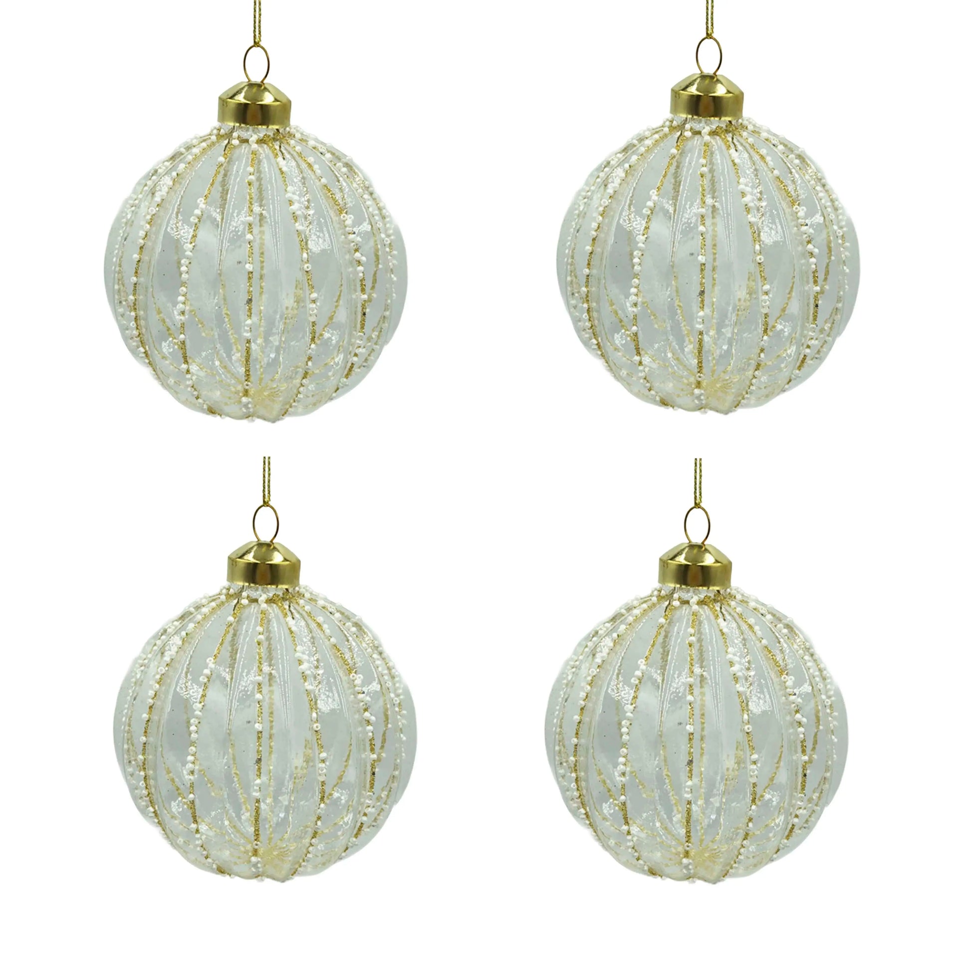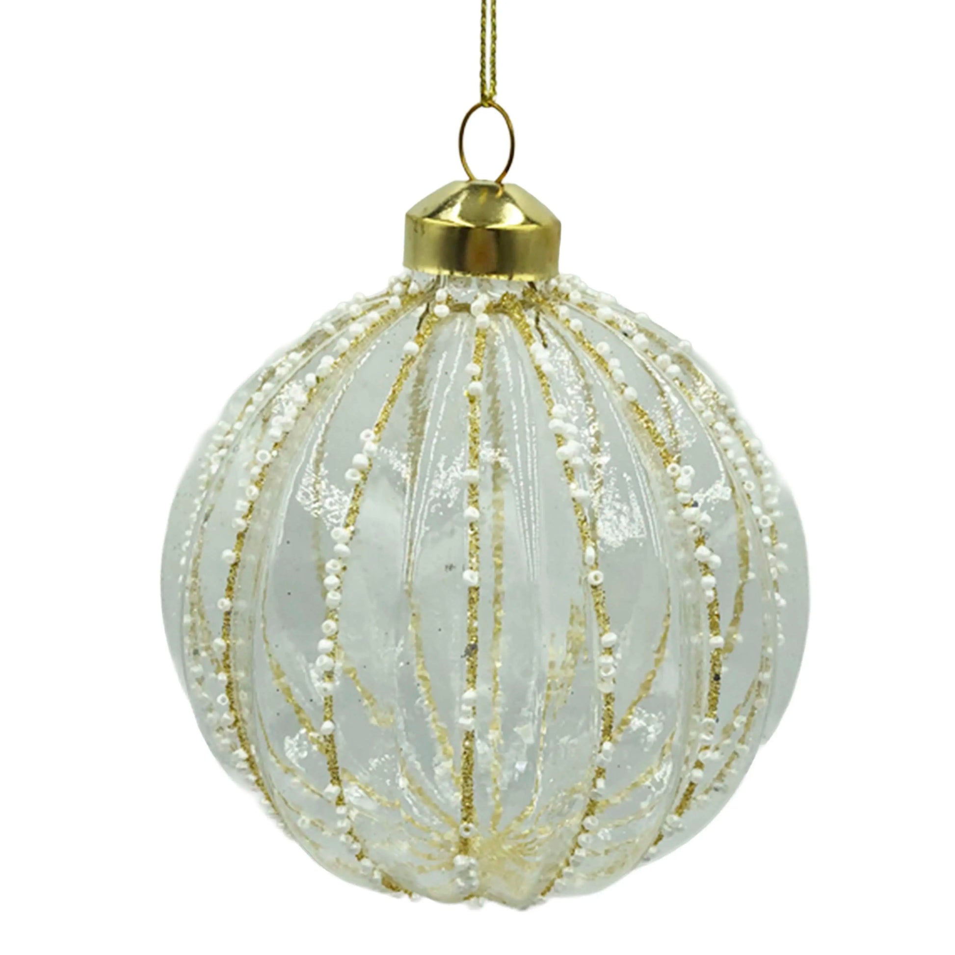 Glas-Christbaumkugel Weiß-Gold – Weihnachtskugel mit Perlenverzierung