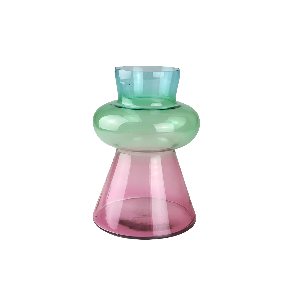 Große Vase aus Glas – Multicolor Statement in Rosa, Grün & Türkis