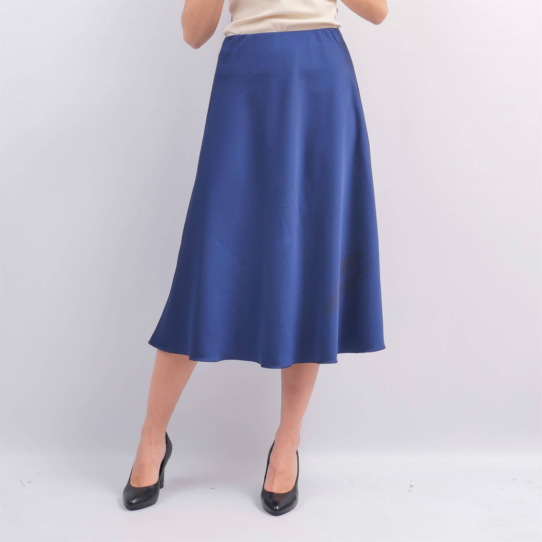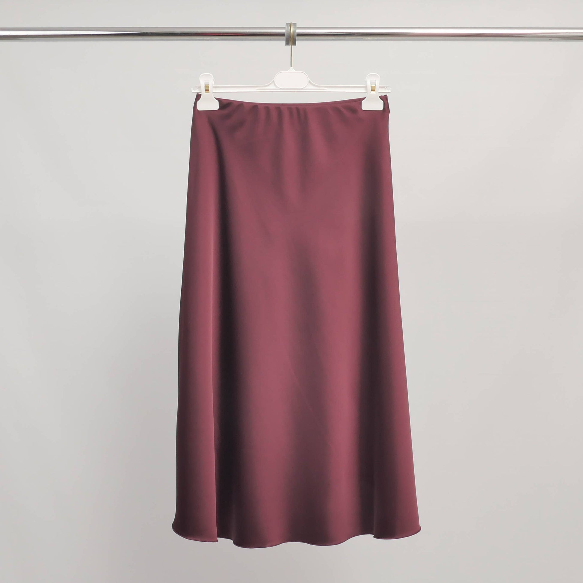 Feminin, edel und mit einem Hauch von Glanz – dieser Midirock aus satinierter Viskose in tiefem Pflaumenton ist ein stilvolles Statement für jeden Anlass. Der fließende Stoff mit feinem Schimmer betont elegant die Bewegung und verleiht deinem Look eine moderne, feminine Note.
