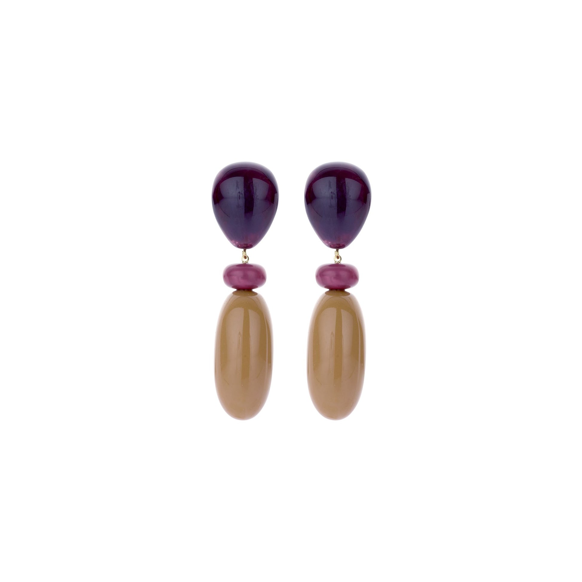 Extravagante Statement-Ohrringe in Beere, Mauve und Camel – ein eleganter Farbmix für stilvolle Auftritte.