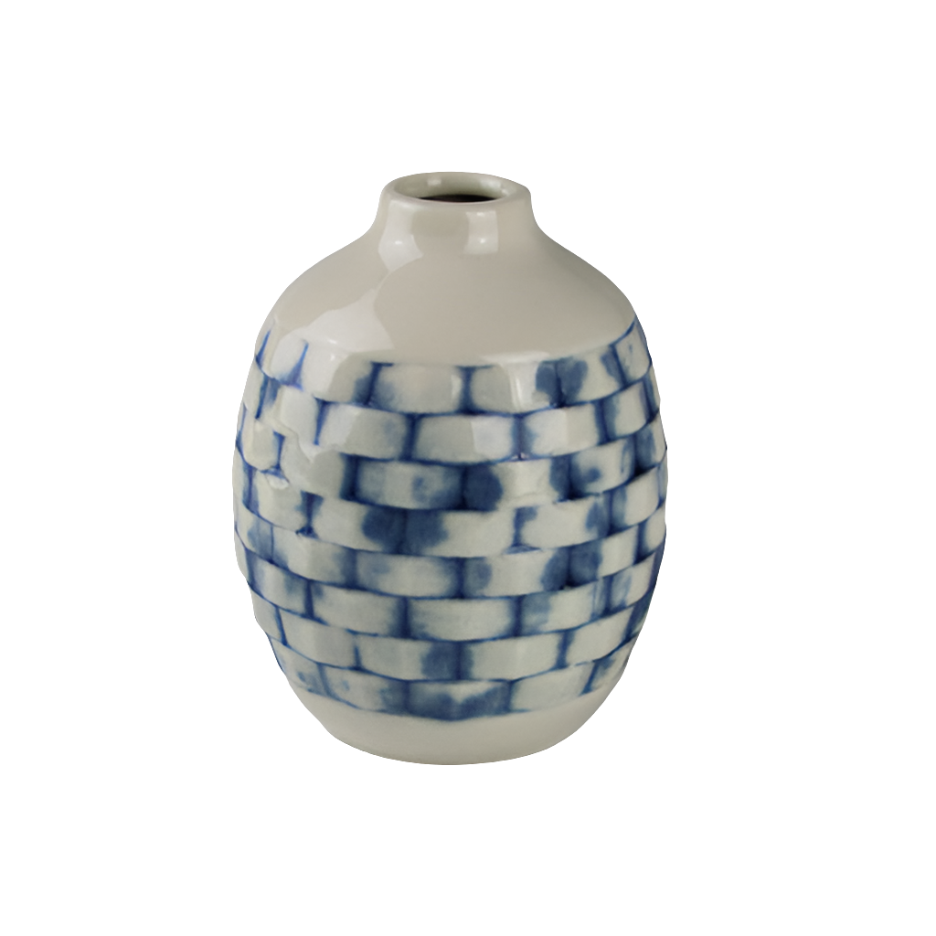 Diese charmante Vase kombiniert klassisches Handwerk mit einem modernen Design. Das blau-weiße Karomuster verleiht dem Stück eine zeitlose Frische, während die kompakte, runde Form für eine harmonische Ausstrahlung sorgt. Ob als Solist oder mit frischen Blumen und Zweigen – diese Keramikvase ist ein dekorativer Hingucker auf Tischen, Regalen oder Fensterbänken.
