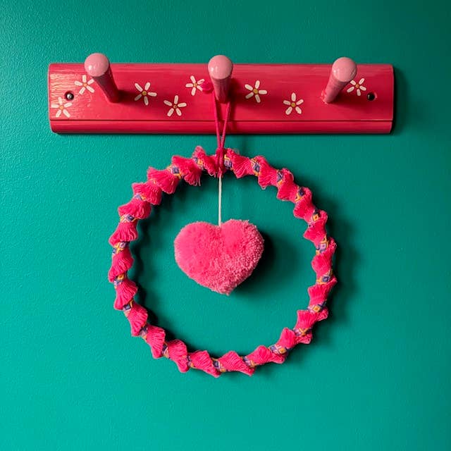 - Maße: Ring Ø 20 cm, Herz-Pom-Pom Ø 7 cm