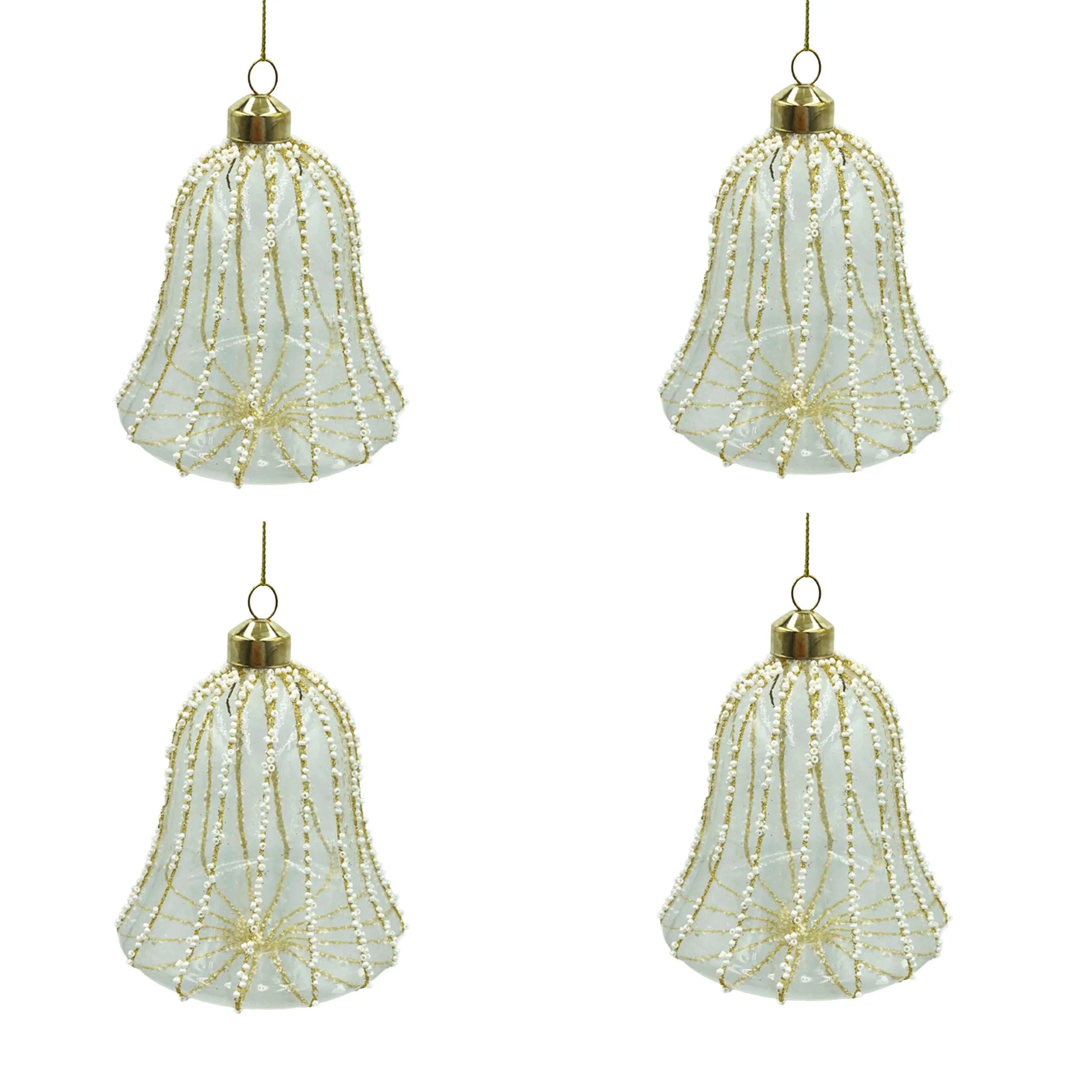 Diese elegante Weihnachtsglocke aus klarem Glas mit goldfarbenen Details (9x9x11 cm) bringt festlichen Glanz an deinen Weihnachtsbaum. Die feinen goldenen Linien, veredelt mit kleinen Perlen, lassen die Glocke im Kerzen- und Lichterglanz erstrahlen und sorgen für eine besonders edle Optik. Ob als stilvoller Akzent am Christbaum, als festliche Fensterdekoration oder als Teil eines weihnachtlichen Arrangements – dieser Anhänger ist ein Must-have für eine elegante Weihnachtsdekoration.