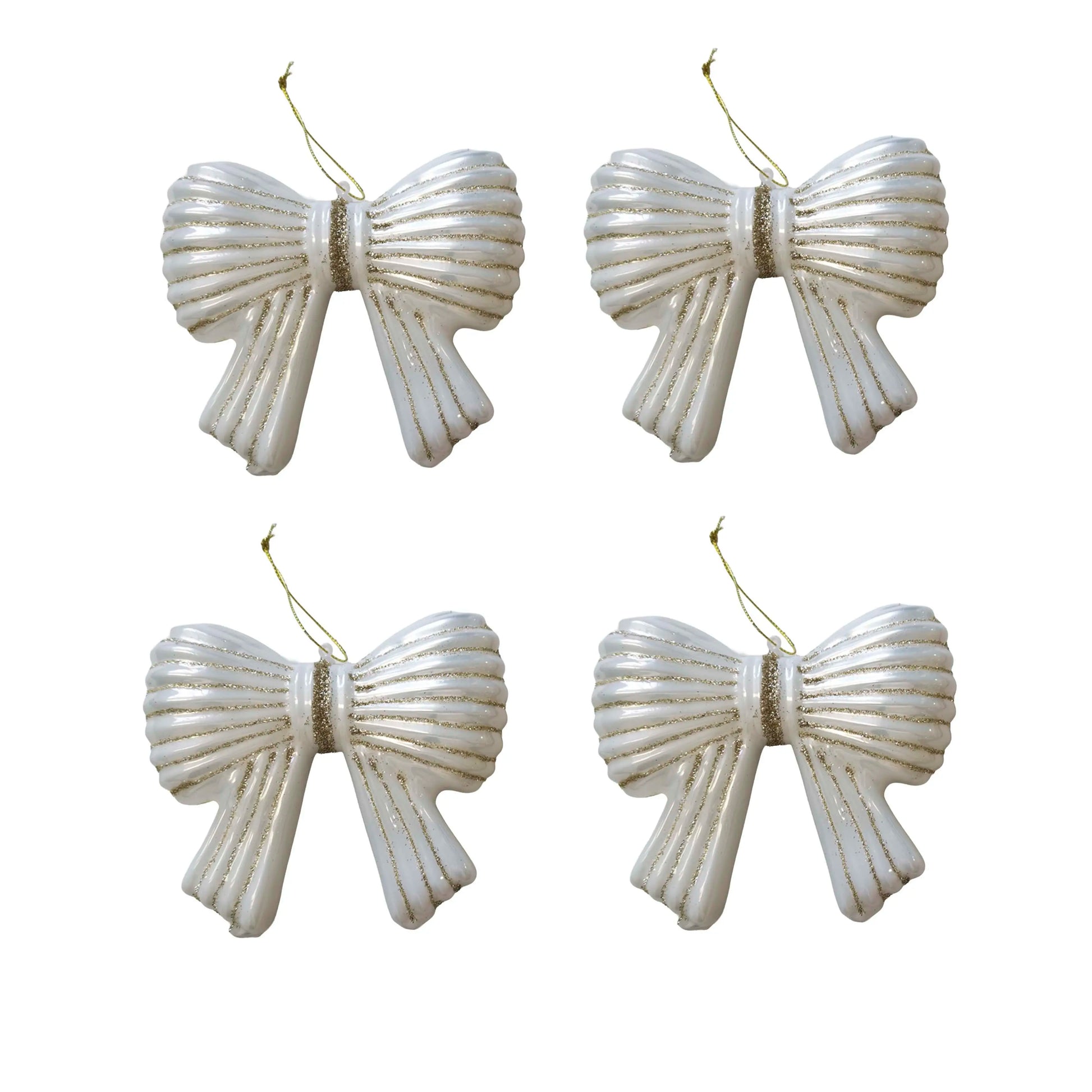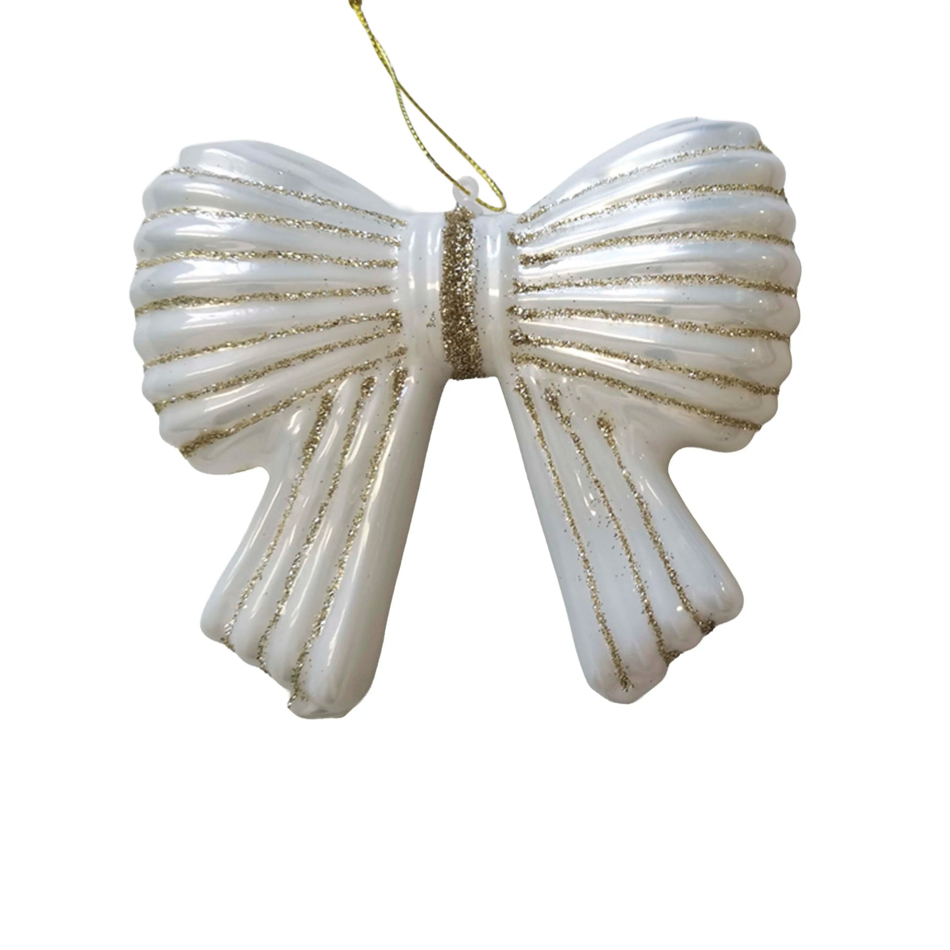 Weihnachtsanhänger Schleife Glas – Perlmutt Weiß & Gold